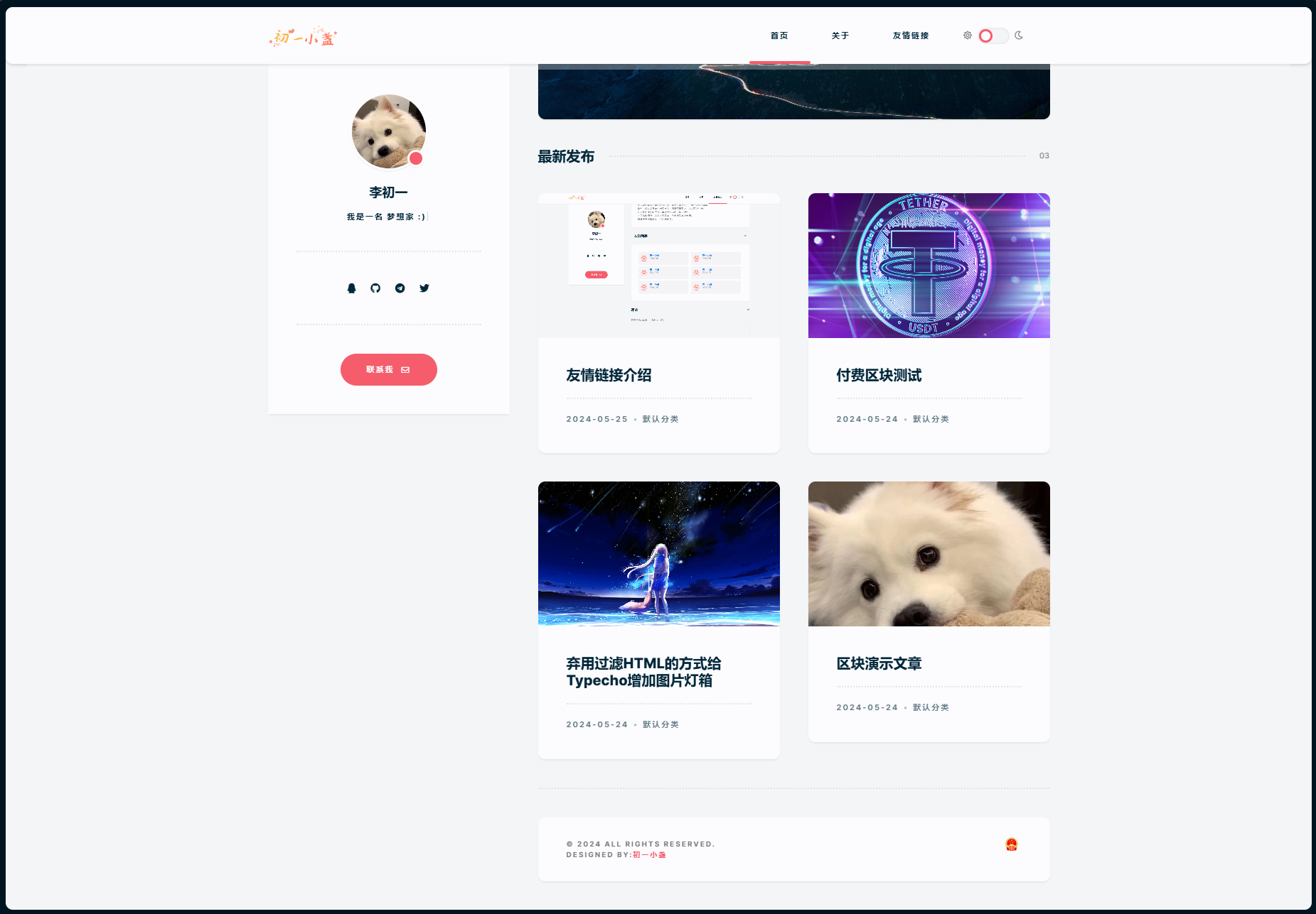 DearLicy主题,一款小众化小清新风格的博客主题 主题支持Typecho所支持的所有版本PHP 简约、小众、优雅