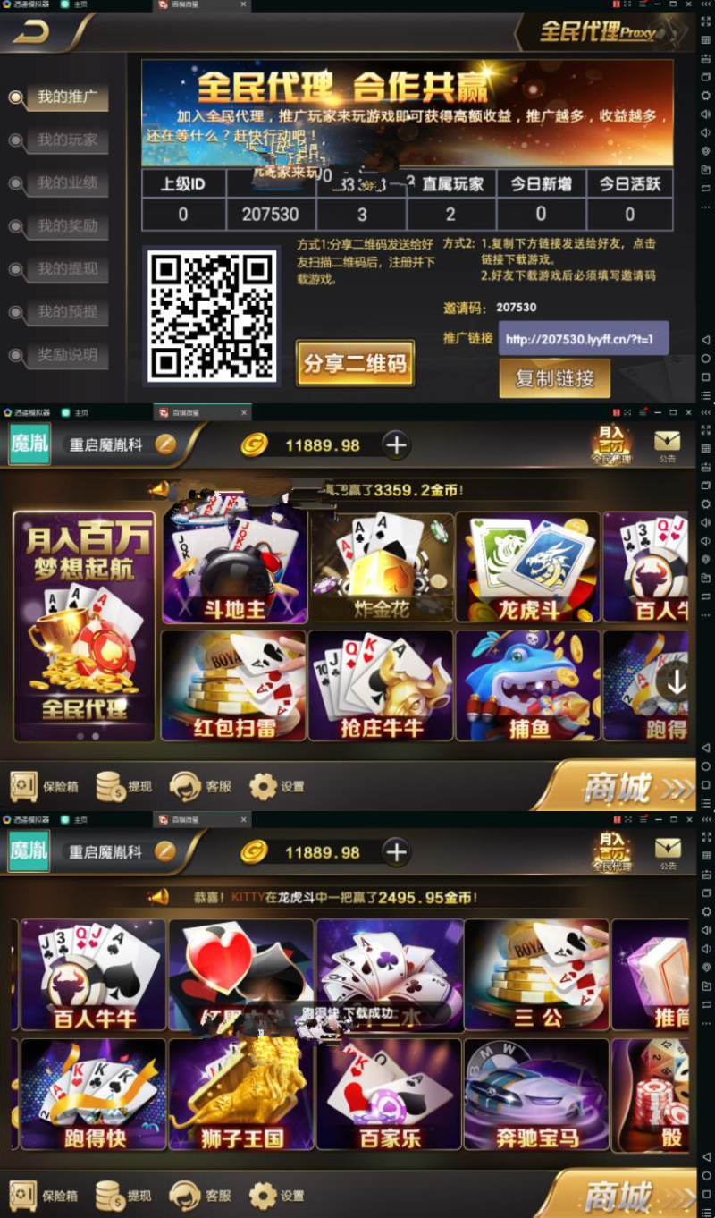 为加速网站,所有图片进行了优化处理,所以并不是高清,实际中游戏与网站本身画面是高清的,部分源码中打包有高清展示图片。棋牌源码网 » S728【微星娱乐】无限代理+保底功能+挂机功能+双端APP+完整搭建视频教程