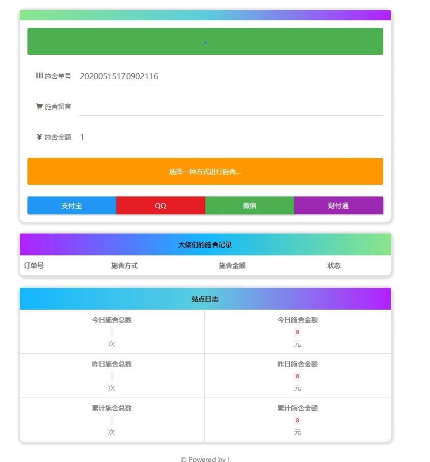 4.施舍记录中的施舍方式改为了QQ、微信、支付宝