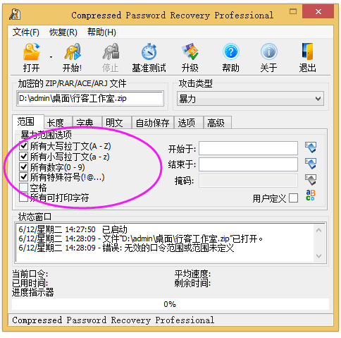 这款压缩密码暴力破解工具支持zip、rar、ace等压缩格式的文件的密码破解,是一款功能强大的Zip密码破解工具。