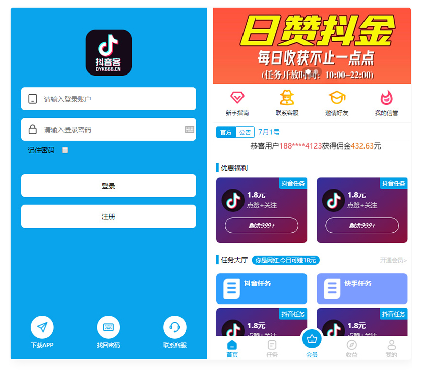 为加速网站,所有图片进行了优化处理,所以并不是高清,实际中游戏与网站本身画面是高清的,部分源码中打包有高清展示图片。棋牌源码网 » A0985-抖音客短视频推广任务系统完美运营级别 [等级功能+信誉积分+保证金]