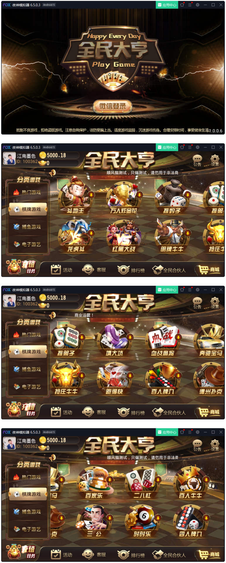 为加速网站,所有图片进行了优化处理,所以并不是高清,实际中游戏与网站本身画面是高清的,部分源码中打包有高清展示图片。棋牌源码网 » S782【全民大亨】源码组件+全新万利UI风格最新破解授权服务器打包+双端APP正常+机器人+视频教程