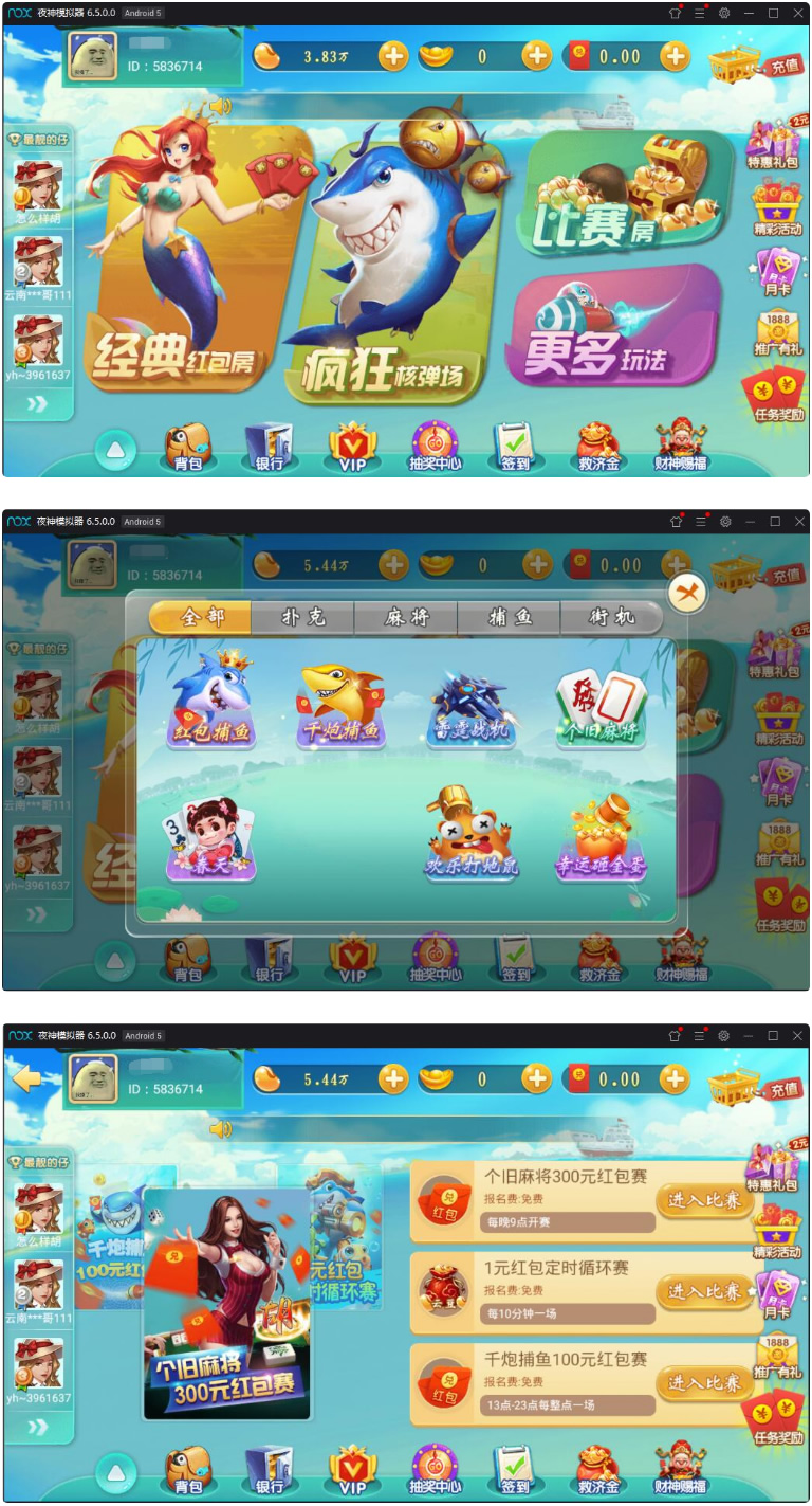 这套是第二版的网狐,主要是钓鱼,画面很漂亮,而且红包是防水的,这也正常。把它拿给会员研究共有7个子游戏: