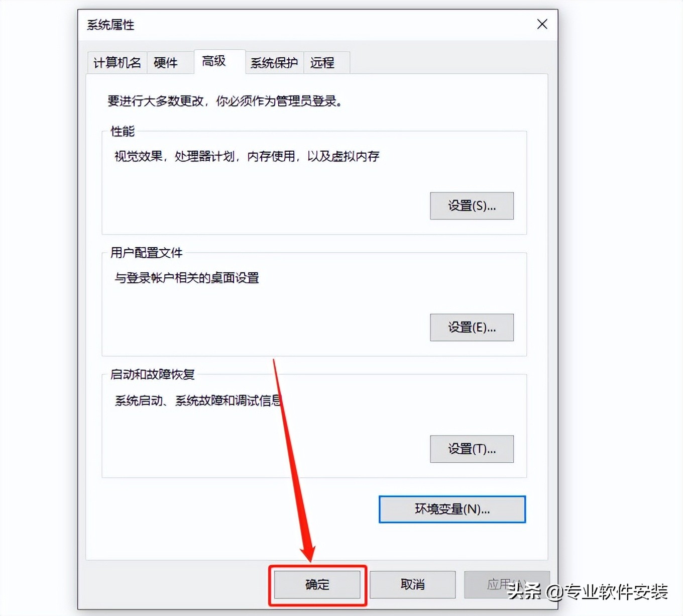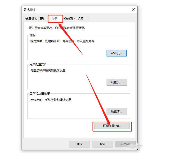 点击【高级】,然后点击【环境变量】