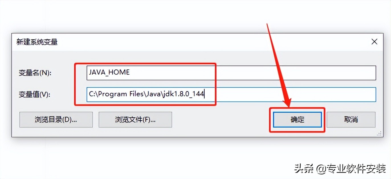 变量名输入【JAVA_HOME】,变量值输入【C:\Program Files\Java\*******】,然后点击【确定】这里的星号请进文件夹查看自己的版本号。比如:jdk1.8.0_144。文件夹名一定不能写错。