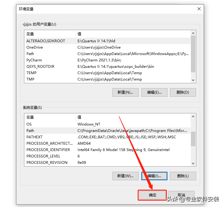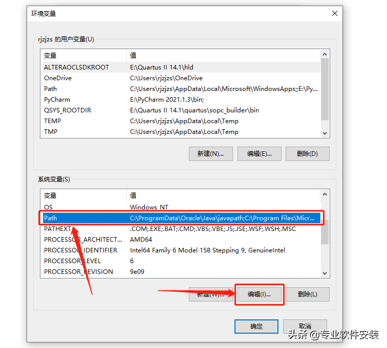 找到并选中【Path】变量,然后点击【编辑】