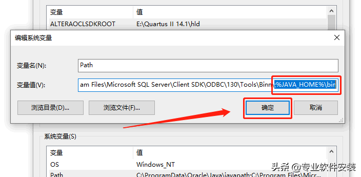 在变量值的最后面加上【;%JAVA_HOME%\bin】,然后点击【确定】