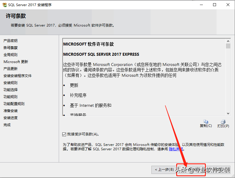 接受条款,点击【下一步】