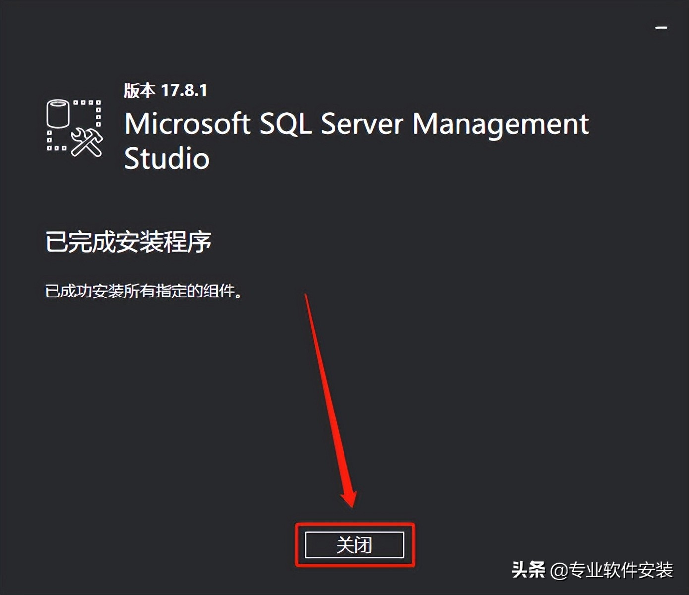 安装进度走完后点击【关闭】