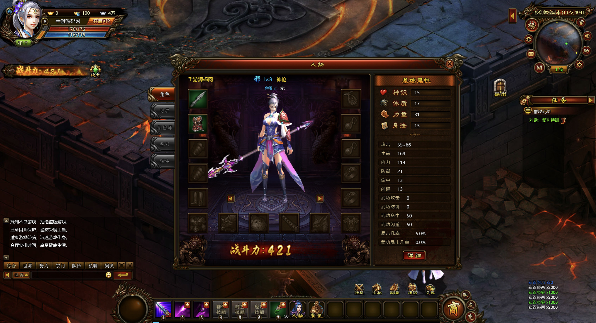 为加速网站,所有图片进行了优化处理,所以并不是高清,实际中游戏与网站本身画面是高清的,部分源码中打包有高清展示图片。棋牌源码网 » S912【网页游戏之武道世界】典藏版3D玄幻仙侠剧情闯关网页游戏-整理打包Win服务端源码视频架设教程-详细外网教程