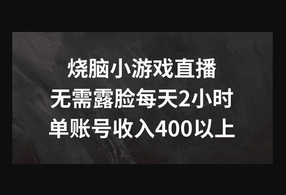 今天给大家带来的是烧脑小游戏直播,无需露脸每天2个小时,单账号收入400+,大家应该经常会看到烧脑小游戏的直播间,他们人气都很高,并且互动性也非常强!