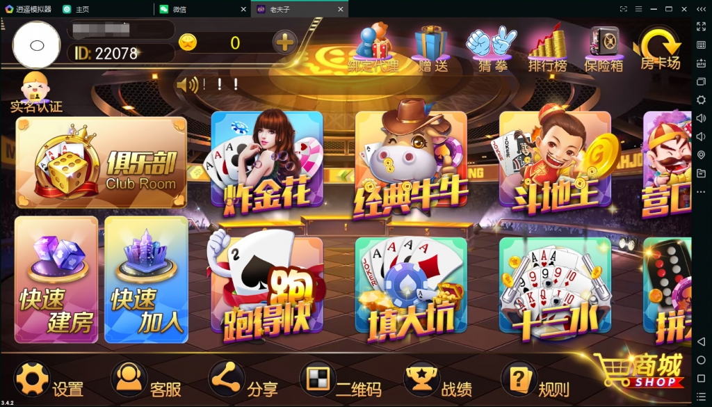 老夫子锋游系列房卡俱乐部运营级,带控制,游戏分为房卡、金币场、积分场,带俱乐部。