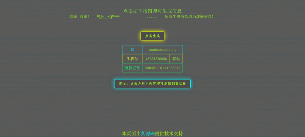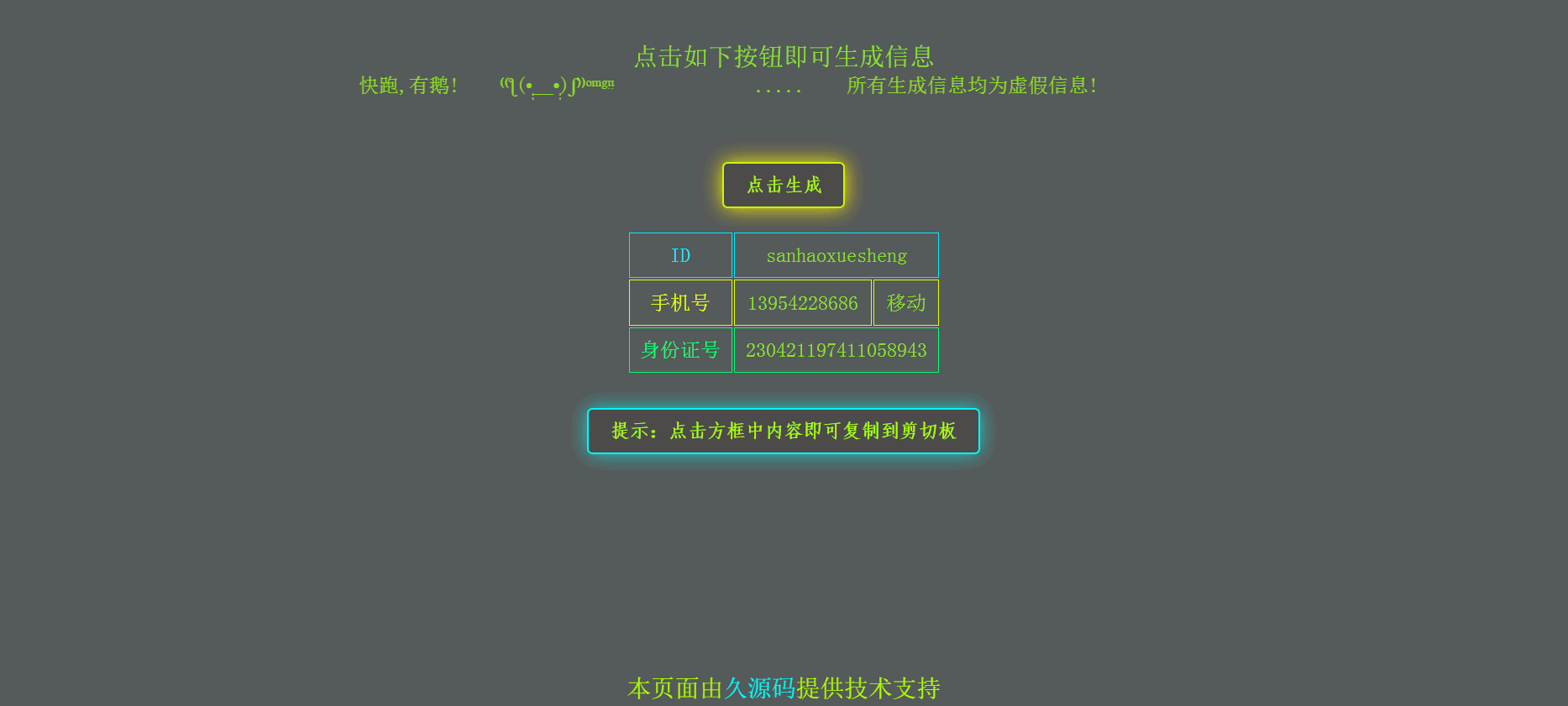 随机虚拟身份信息生成网站源码—随机身份证,手机号生成