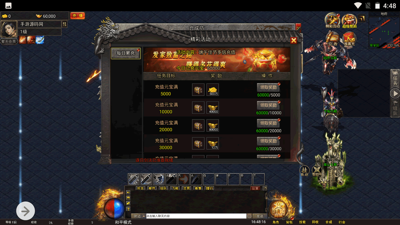 为加速网站,所有图片进行了优化处理,所以并不是高清,实际中游戏与网站本身画面是高清的,部分源码中打包有高清展示图片。棋牌源码网 » Y007【H5传奇之幽冥地狱传奇】多端互通三网H5全网通传奇手游-打包Linux服务端源码视频架设教程-完善运营网页后台-多功能GM网页后台
