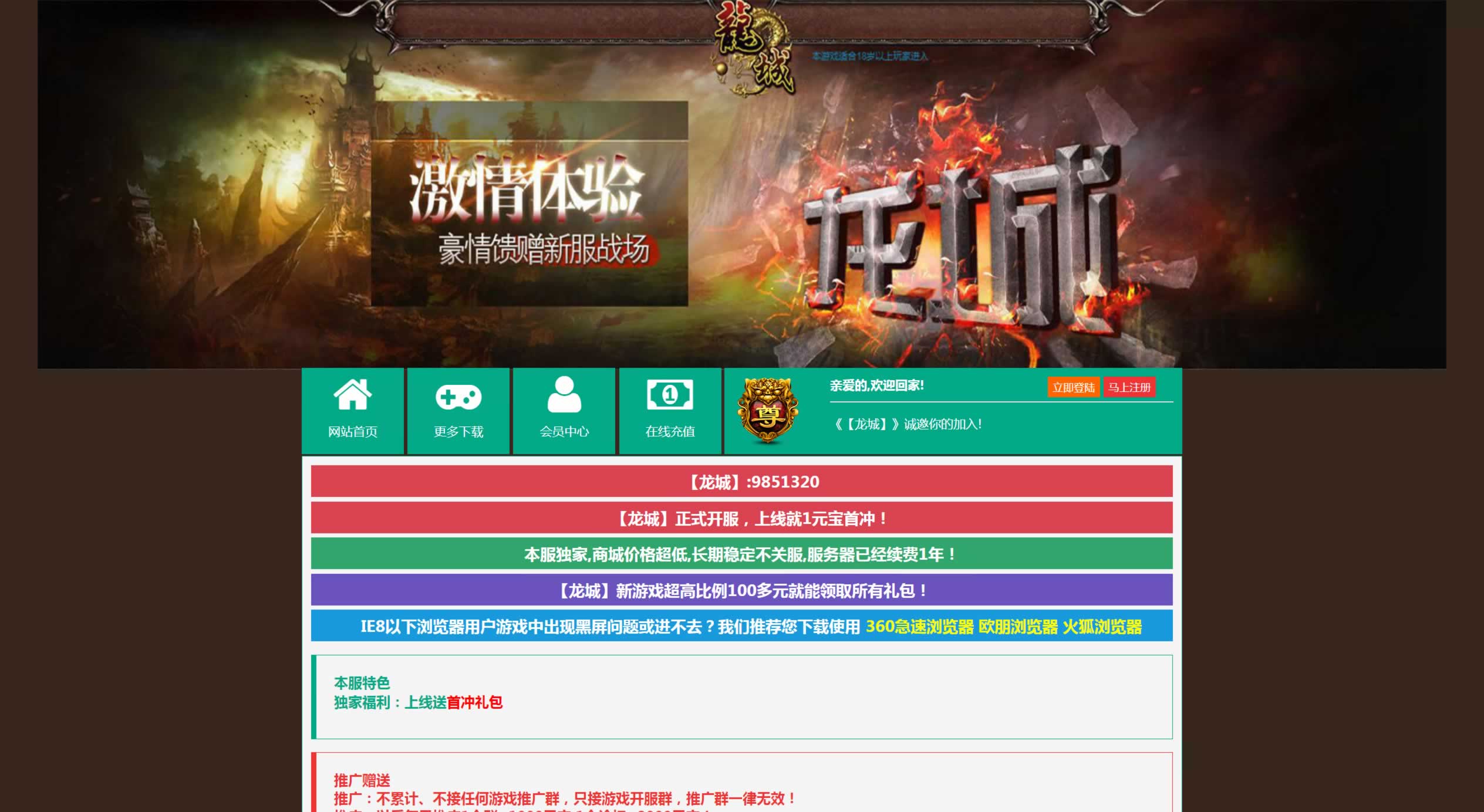 为加速网站,所有图片进行了优化处理,所以并不是高清,实际中游戏与网站本身画面是高清的,部分源码中打包有高清展示图片。棋牌源码网 » Y011【网页游戏之龙城】传奇经典剧情角色扮演闯关类动作网页游戏-最新整理一键单机-打包Win服务端源码视频架设教程-GM工具