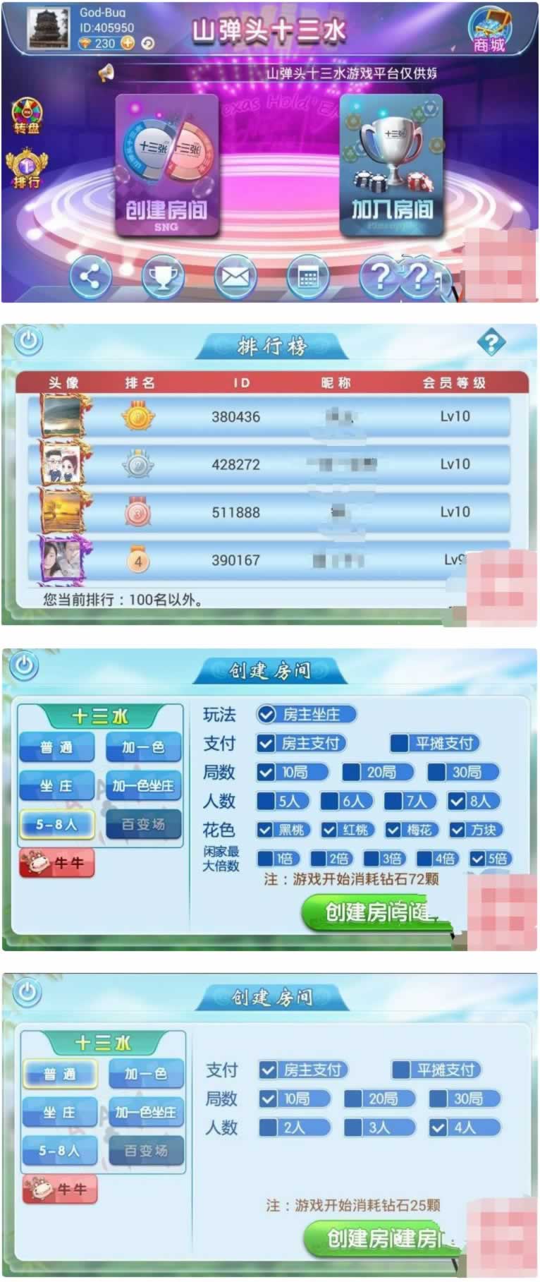 为加速网站,所有图片进行了优化处理,所以并不是高清,实际中游戏与网站本身画面是高清的,部分源码中打包有高清展示图片。棋牌源码网 » P012-山弹头十三水游戏源码下载-网狗(狐)8人十三水牛牛程序极品稀有程序分享