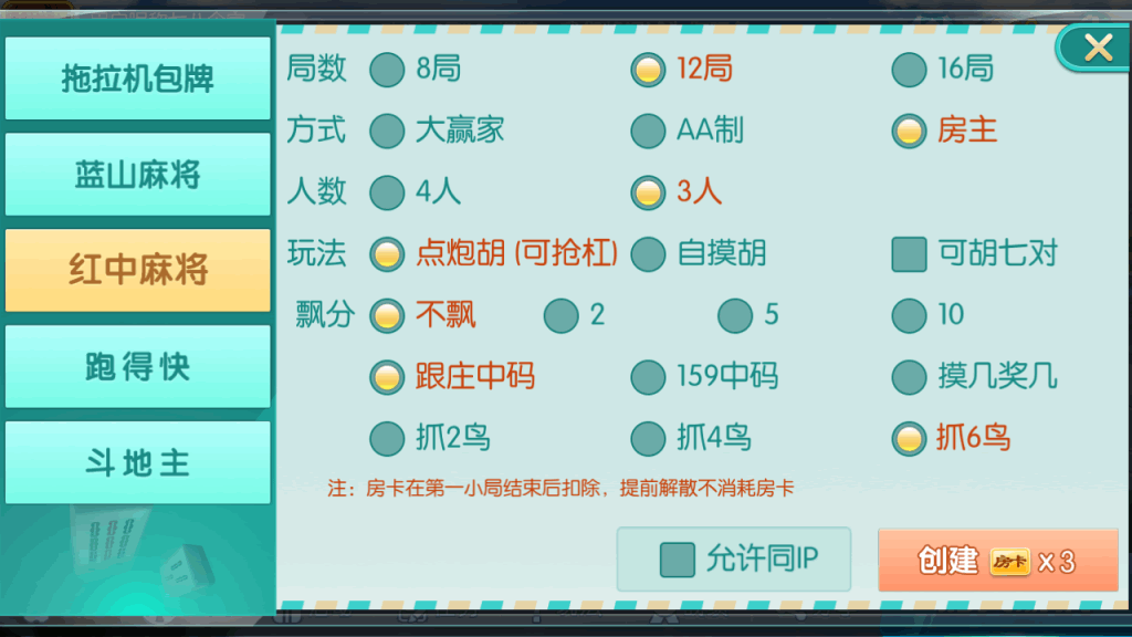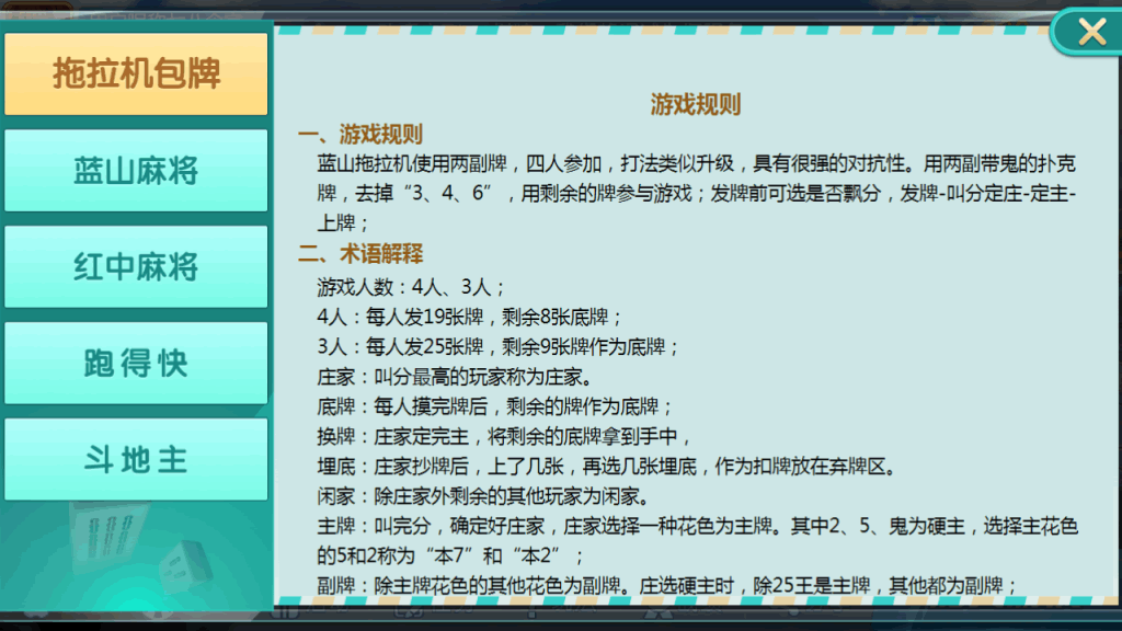 这个还是不错的,拖拉机包牌,红中麻雀,蓝山麻雀,跑得快,斗地猪,都是主要玩法,而且规则很不错。