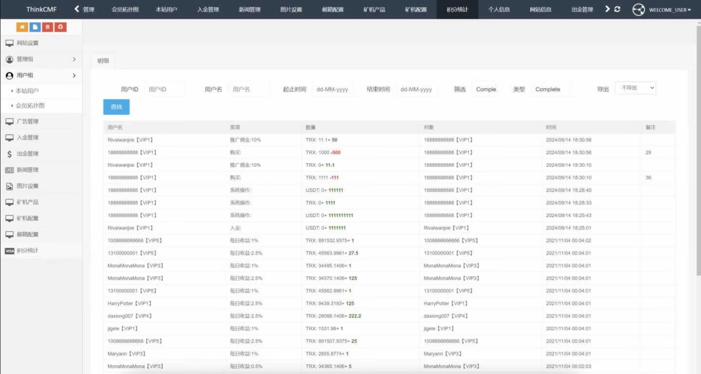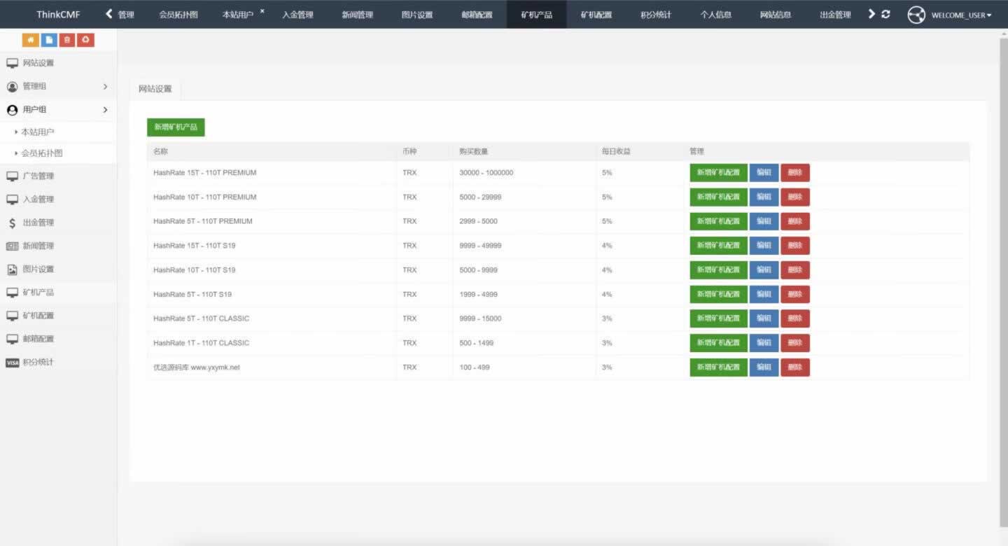 一款ThinkCMF开发的TRX矿机源码,完美运营级别,4国语言、usdt充值还不错,感兴趣的群友可以研究下,文件包里面有一个搭建视频教程。