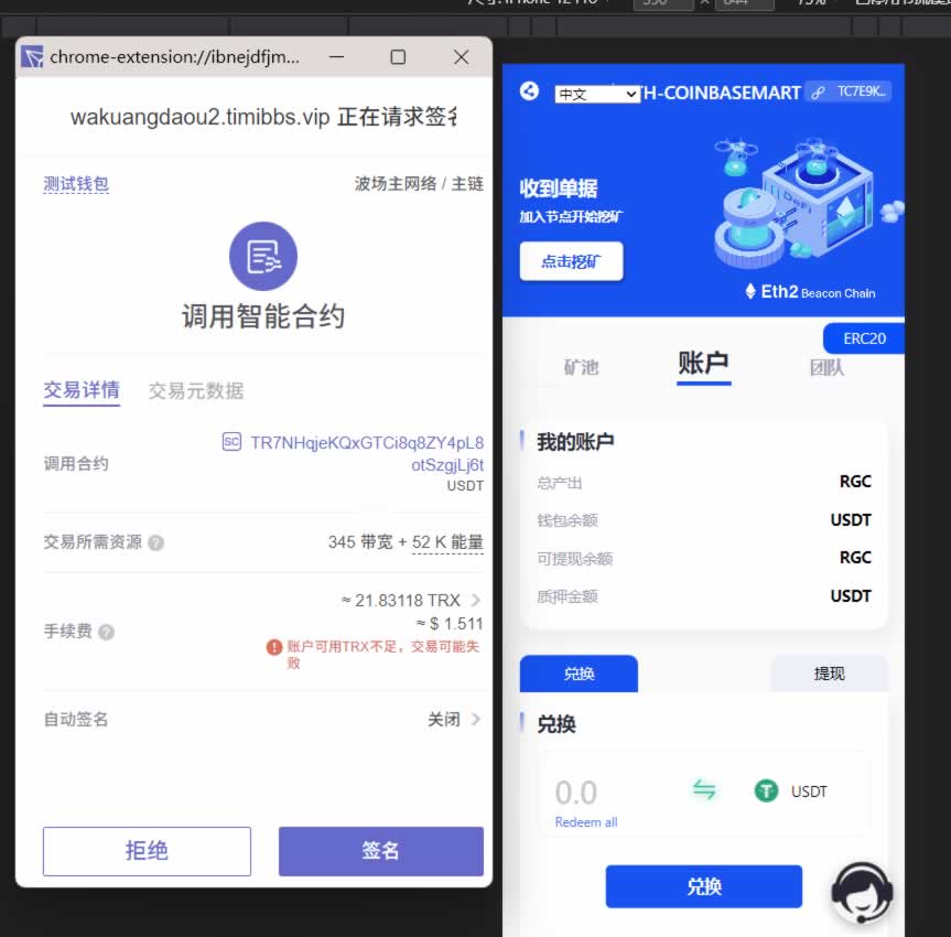 为加速网站,所有图片进行了优化处理,所以并不是高清,实际中游戏与网站本身画面是高清的,部分源码中打包有高清展示图片。棋牌源码网 » Q117-TRC20+ETH双链授权挖矿质押源码-多语言/盗U秒U/TG机器人自动通知/假鱼苗