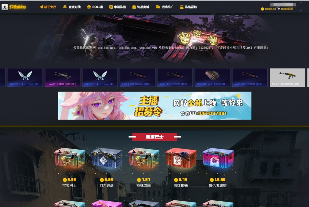 为加速网站,所有图片进行了优化处理,所以并不是高清,实际中游戏与网站本身画面是高清的,部分源码中打包有高清展示图片。棋牌源码网 » Q126-CSGO盲盒开箱源码 | 盲盒对战 + 幸运开箱 + 城积分商 | 第二版 + 部署教程