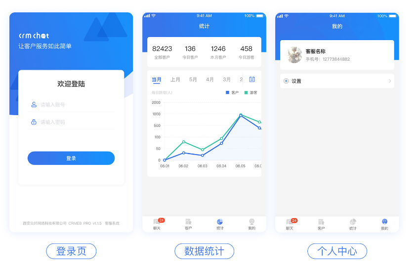 本系统(CRMChat)是采用Swoole4+Tp6+Redis+Vue+Mysql开发的独立高性能客服系统,客服系统用户端支持Pc端、移动端、小程序、文章中接入客服,利用超链接、网页内嵌、二维码、定制对接等方式让网上所有通道都可以快速通过本系统联系到商家,商家端支持Pc端、移动端(App)随时随地接收到用户的各种咨询,商家可以添加话术库、也可以对用户进行分组、加标签、加备注进行管理,是一款互联网链接商家的一个桥梁,也是商家客户管理的工具,本开源项目遵循最开放的木兰协议,可以随意使用。商家端APP也不用您自己辛苦上架了,我们提供App工具可以直接下载配置使用, 让您快速拥有一套强大的私有客服系统 。在使用过程中遇到问题随时留言,也欢迎各位大神参与本项目一起完善!!!