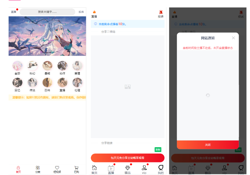 其他的都还好,后台、代理端都是正常的,短视频带直播和试看功能