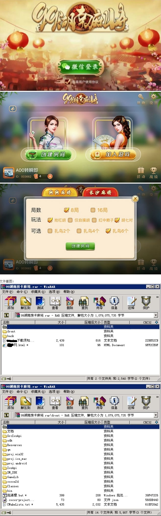 为加速网站,所有图片进行了优化处理,所以并不是高清,实际中游戏与网站本身画面是高清的,部分源码中打包有高清展示图片。棋牌源码网 » Y082-湖南地方麻雀/99湖南房卡麻雀全套完整源码手机端+服务器端+网站后台