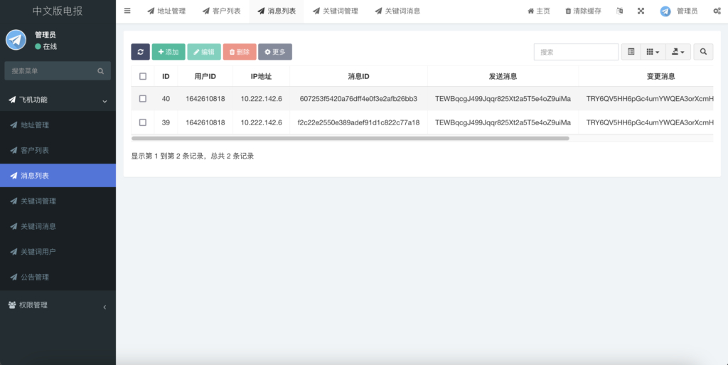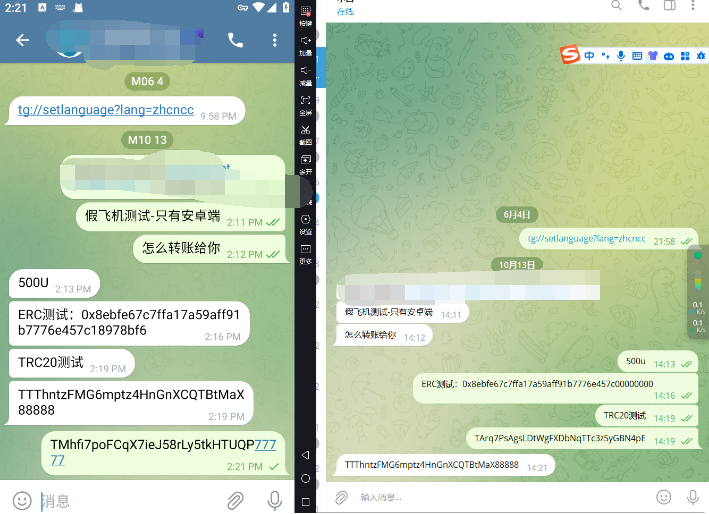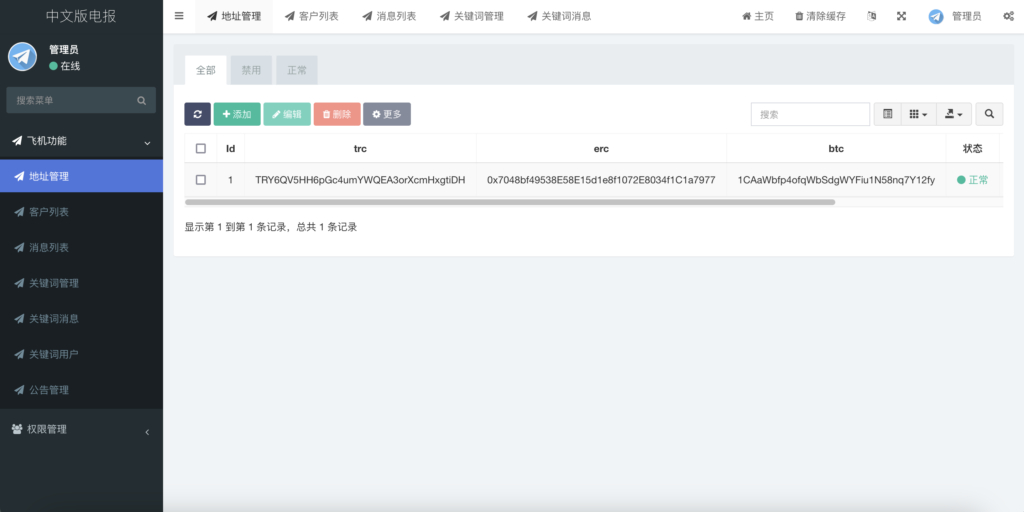 用假TG发送出去的地址会被篡改为后台地址,用正版TG发送给假TG的地址也会篡改为后台设置的地址
