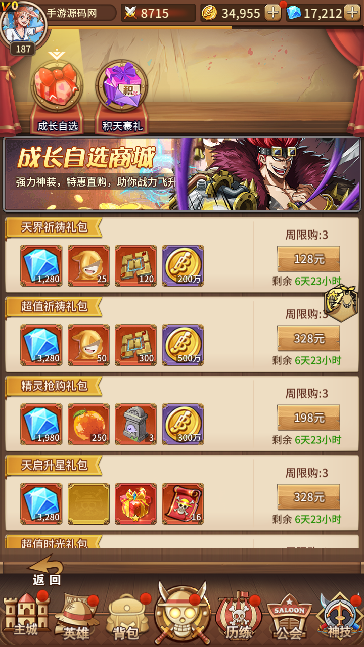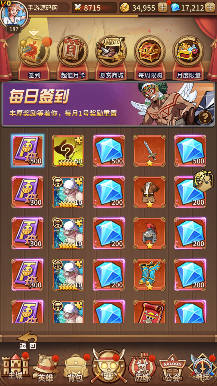 为加速网站,所有图片进行了优化处理,所以并不是高清,实际中游戏与网站本身画面是高清的,部分源码中打包有高清展示图片。棋牌源码网 » Y094【海贼王伟大航路之六系新世界内购版】稀有冒险卡牌剧情手游-Linux服务端源码视频架设教程-开放多区跨服-新版多功能CDK授权后台-用户物品后台-安卓版本