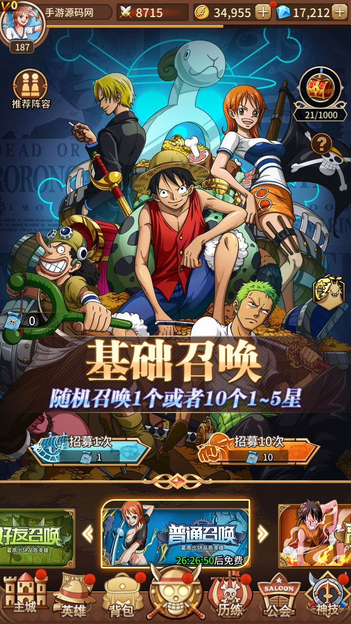 【海贼王伟大航路之六系新世界内购版】站长推荐稀有冒险卡牌剧情手游-2024年11月18日最新打包Linux服务端源码视频架设教程-开放多区跨服-新版多功能CDK授权后台-用户物品后台-安卓版本!