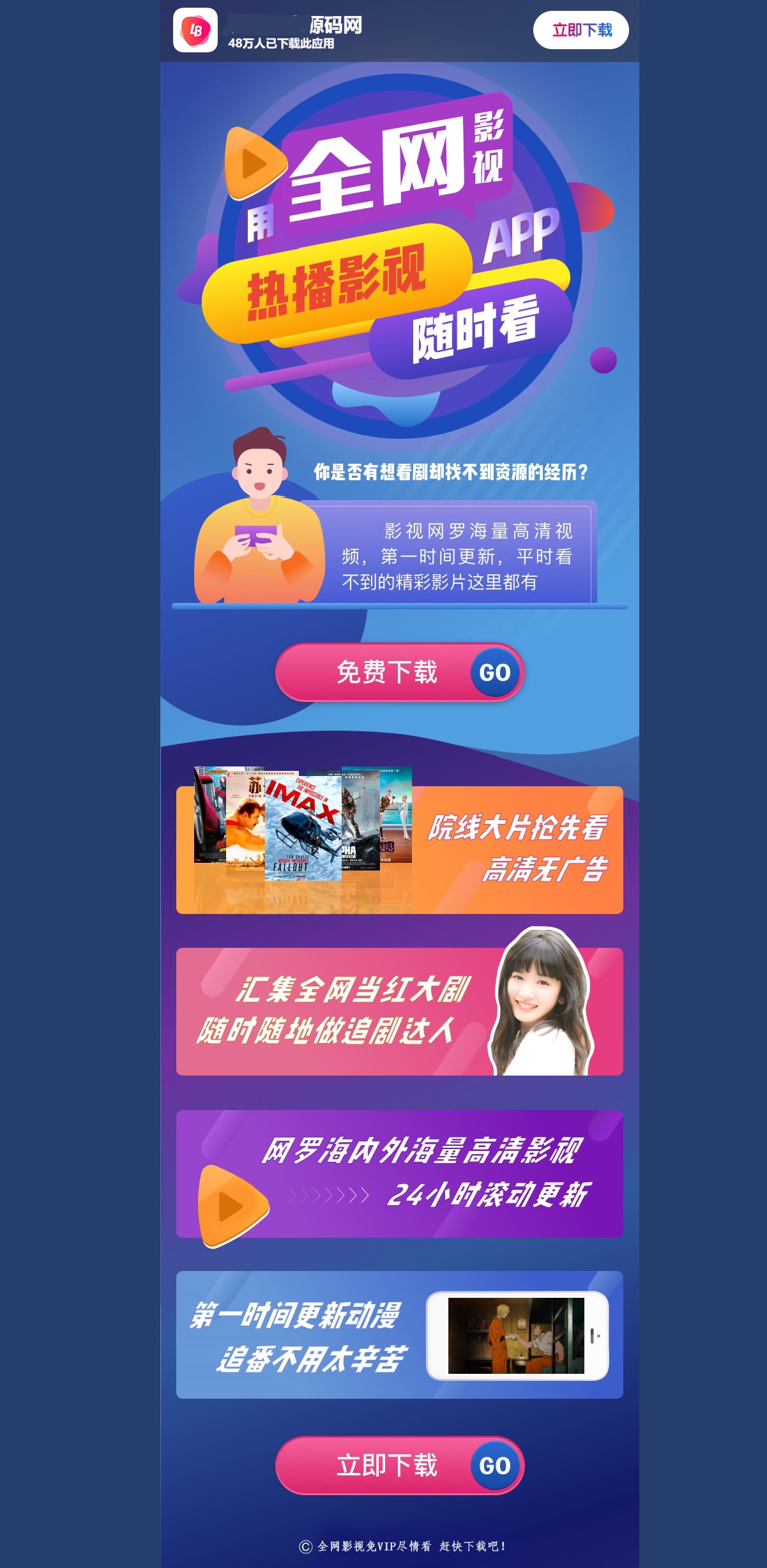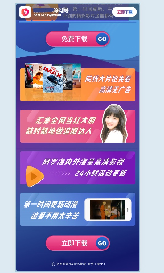 影视APP下载页源码,该源码为免费源码,直接注册后就可下载。