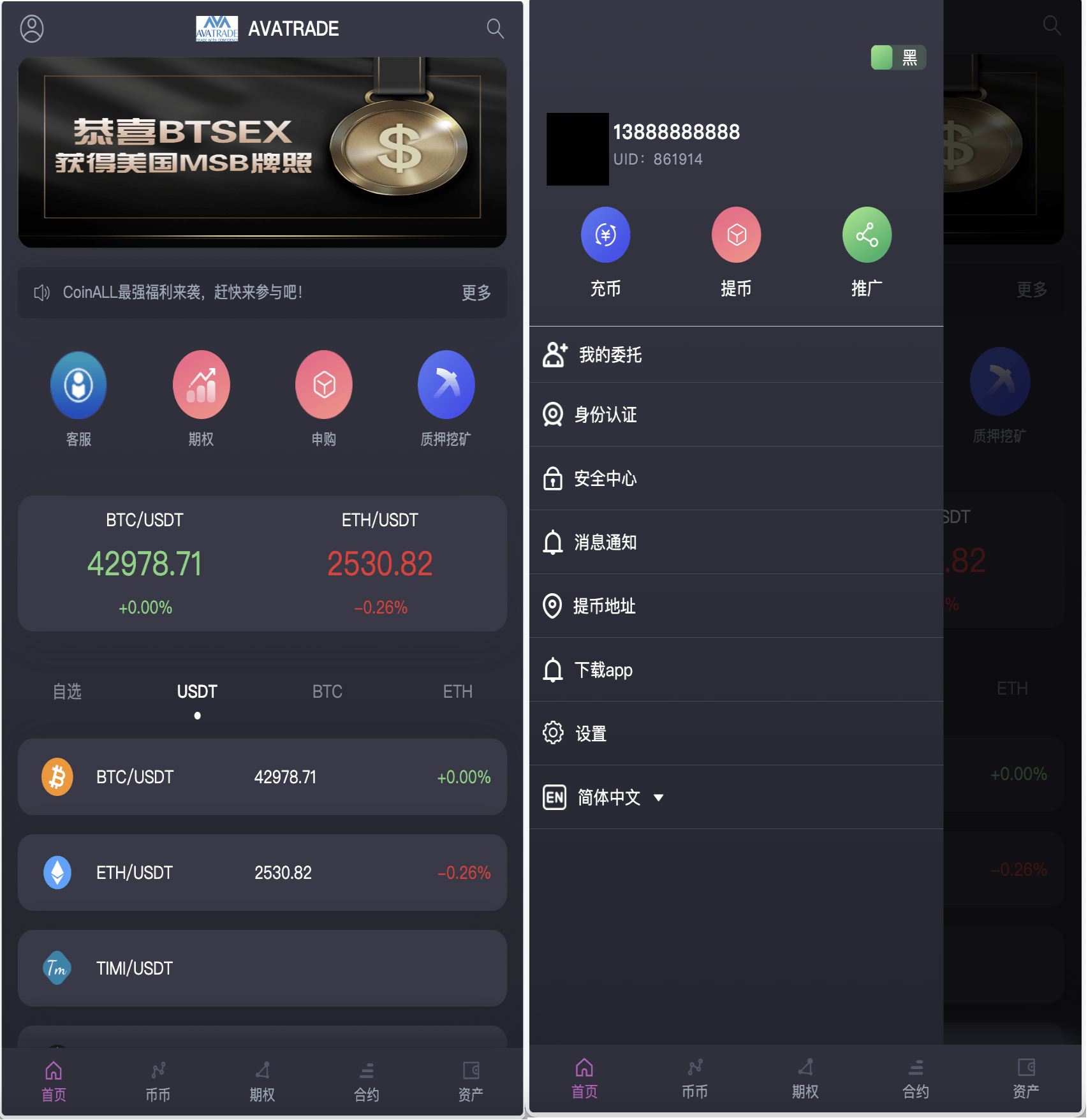 AVATRADE多语言交易所/合约交易+期权交易+币币交易+申购+矿机+风控/前端wap+pc纯源码/带搭建教程