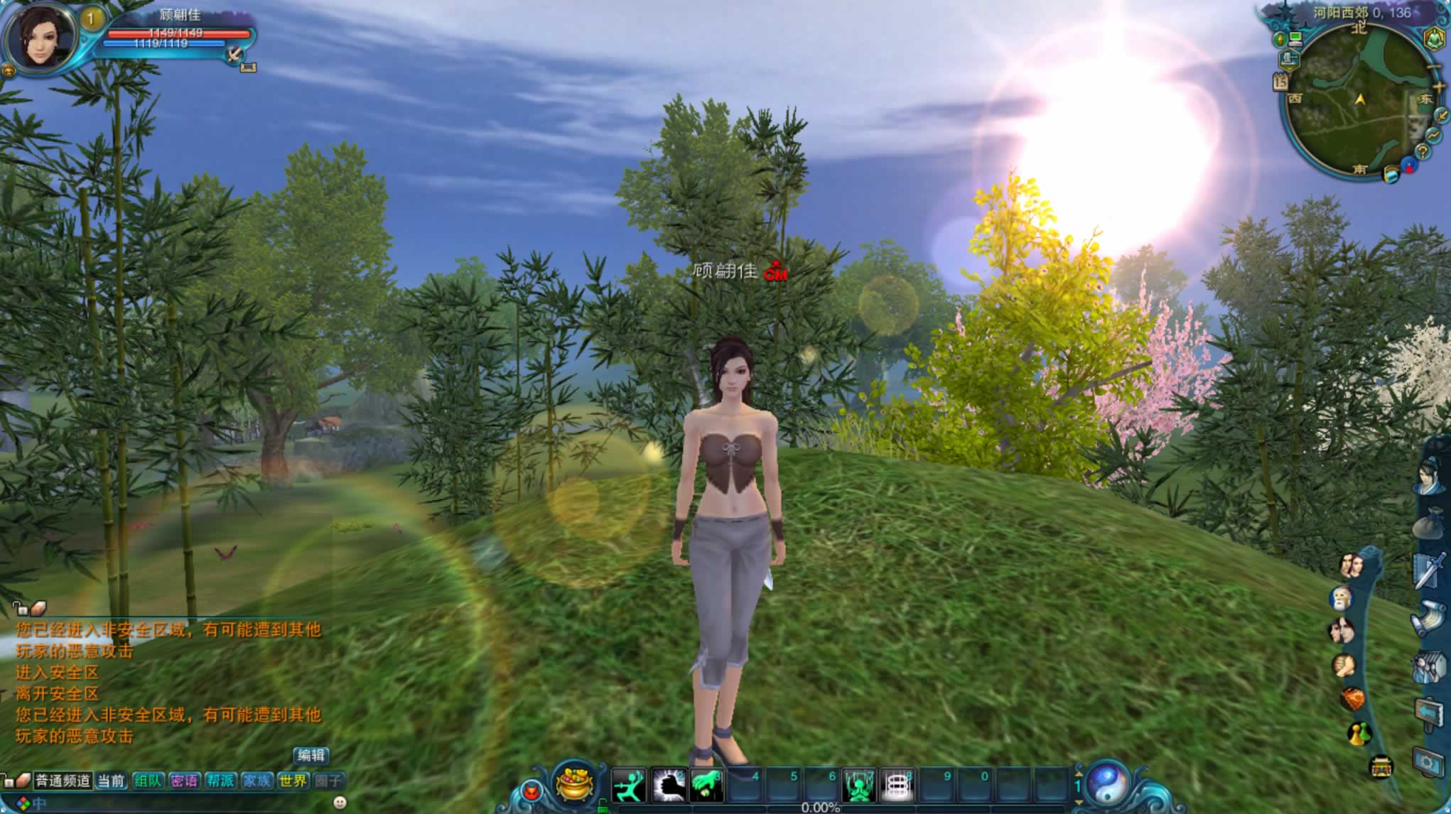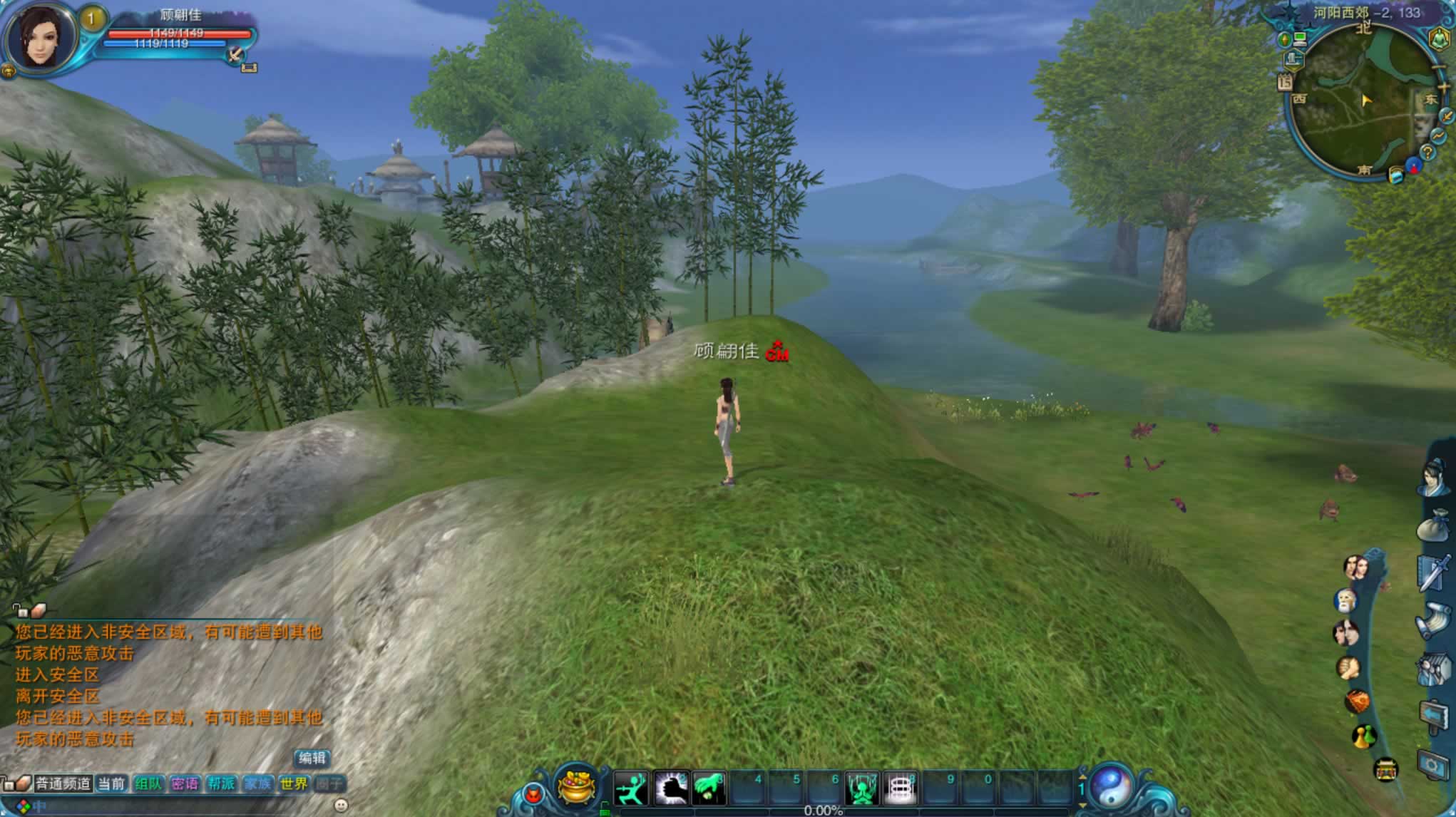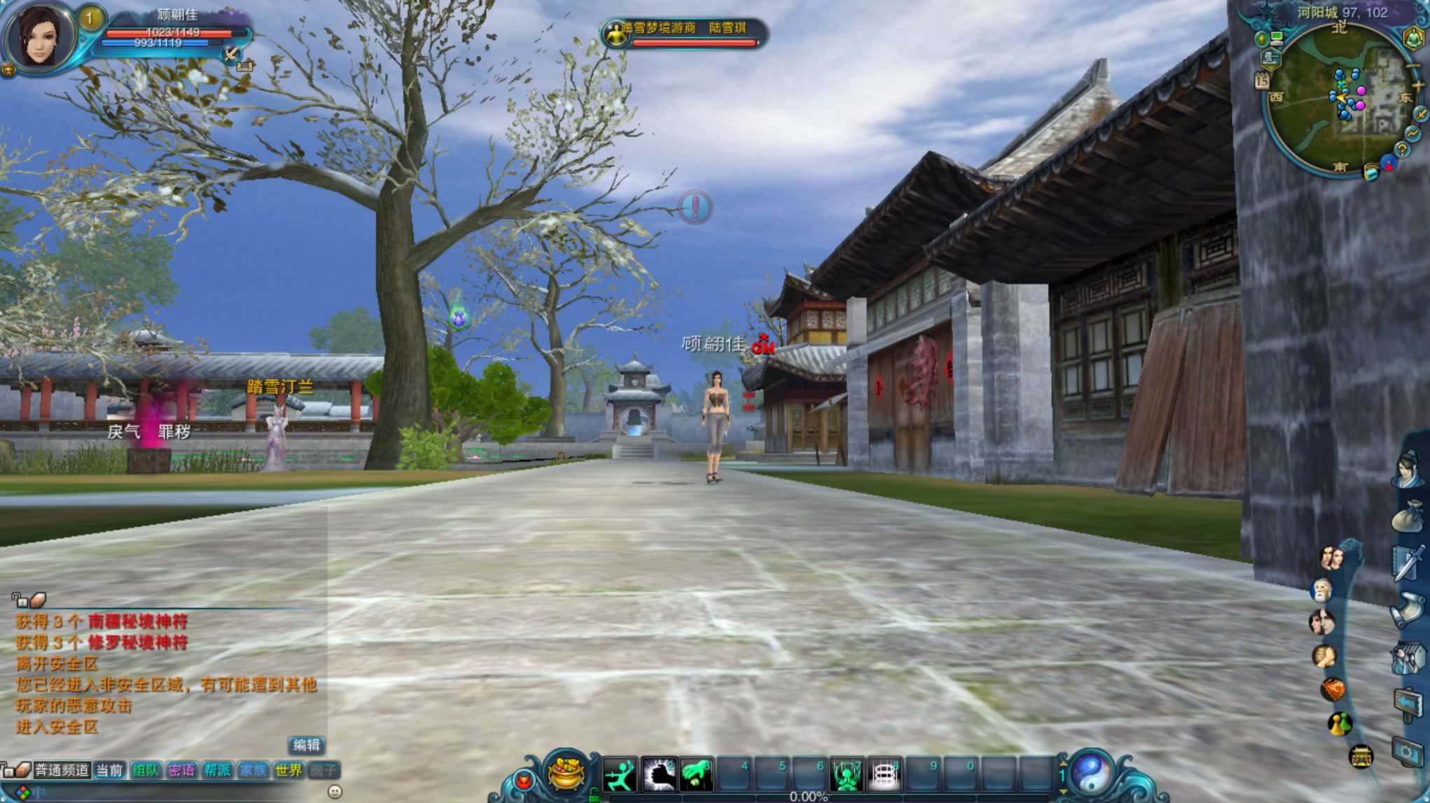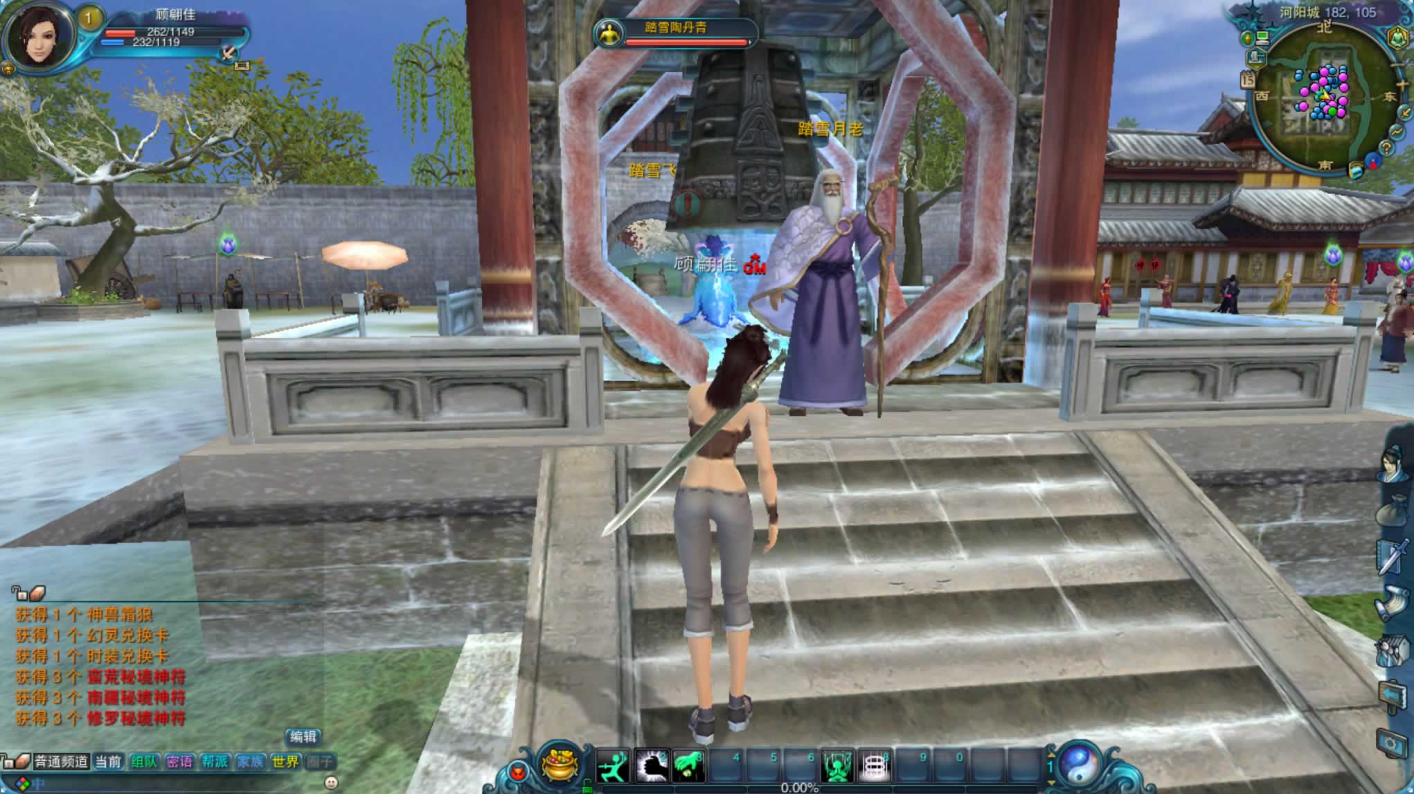 上线先去仙工处买个低级法宝带上,在一排NPC对面找小芳买个福利装备带上
