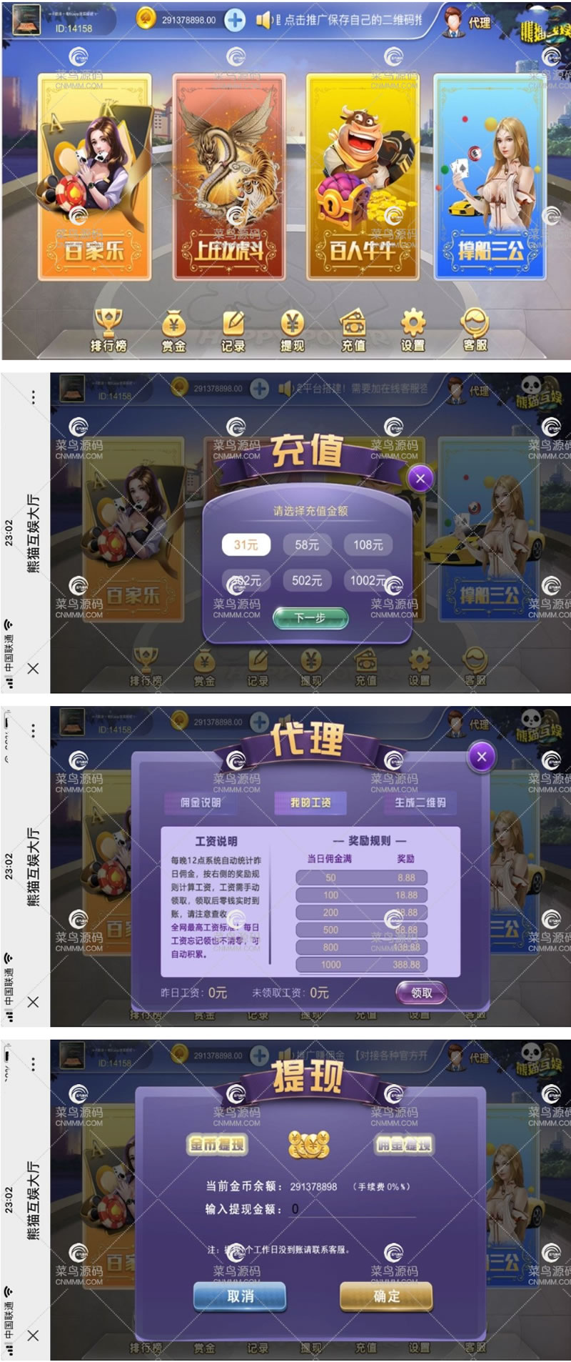 为加速网站,所有图片进行了优化处理,所以并不是高清,实际中游戏与网站本身画面是高清的,部分源码中打包有高清展示图片。棋牌源码网 » P080-最新解密版4合1游戏内含百家le+上庄龙虎+三公+上庄牛