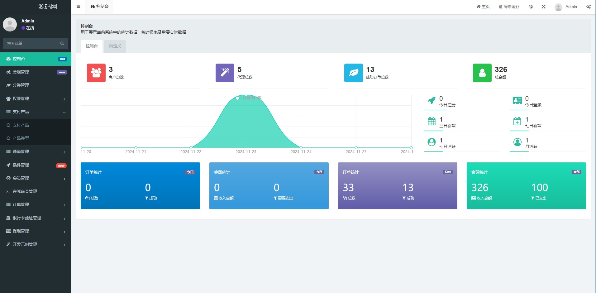 系统采用FastAdmin框架独立全新开发,安全稳定,系统支持代理、商户、码商等业务逻辑。