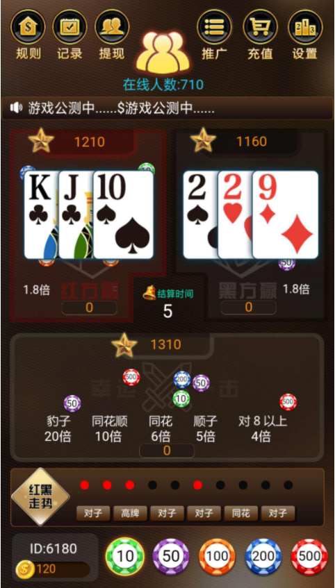为加速网站,所有图片进行了优化处理,所以并不是高清,实际中游戏与网站本身画面是高清的,部分源码中打包有高清展示图片。棋牌源码网 » P083-H5红黑大战/扎金花最新无授权游戏源码支持6级返佣