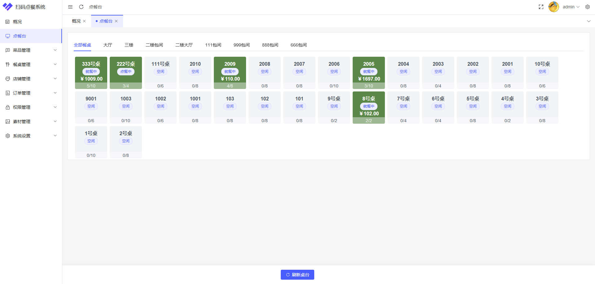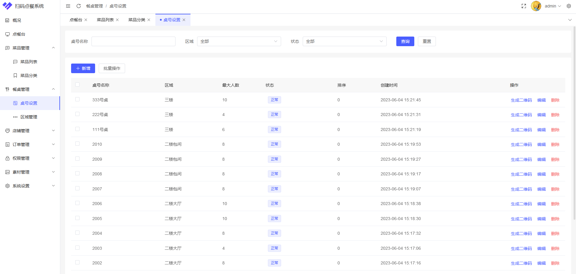 桌号管理:商户可以对店铺中的就餐桌进行编号,并录入到系统中,就可以通过系统对餐桌进行管理。