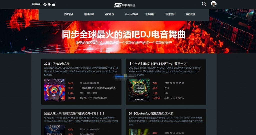 6 CMS模块:电音节,DJ文化,DJ资讯;可扩展为图片模块、视频模块、下载模块
