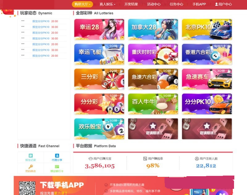为加速网站,所有图片进行了优化处理,所以并不是高清,实际中游戏与网站本身画面是高清的,部分源码中打包有高清展示图片。棋牌源码网 » Z019-真人乐购波菜源码/解决期数期号不更新问题 +完整数据库