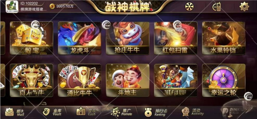 炒金花、红黑战、碳化硅波、百家乐、百人推牛、百人牛、通弼牛、抢壮牛牛、红包扫雷、斗地主、水浒、水果钟、幸运轮