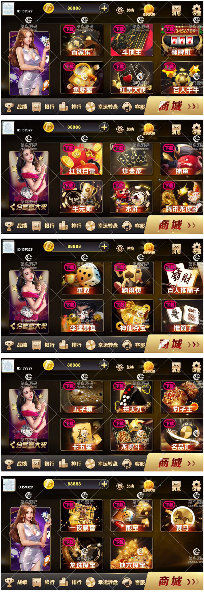 为加速网站,所有图片进行了优化处理,所以并不是高清,实际中游戏与网站本身画面是高清的,部分源码中打包有高清展示图片。棋牌源码网 » P217-颂游黑金过授权版本+安卓苹果双端APP+搭建教程