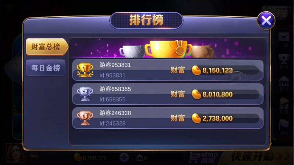 具有排行榜、银行和礼品功能的可停靠支付界面