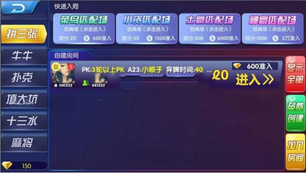 程序可以进行金币玩法,可以选择菜鸟匹配、小资匹配、土豪匹配、神豪匹配、