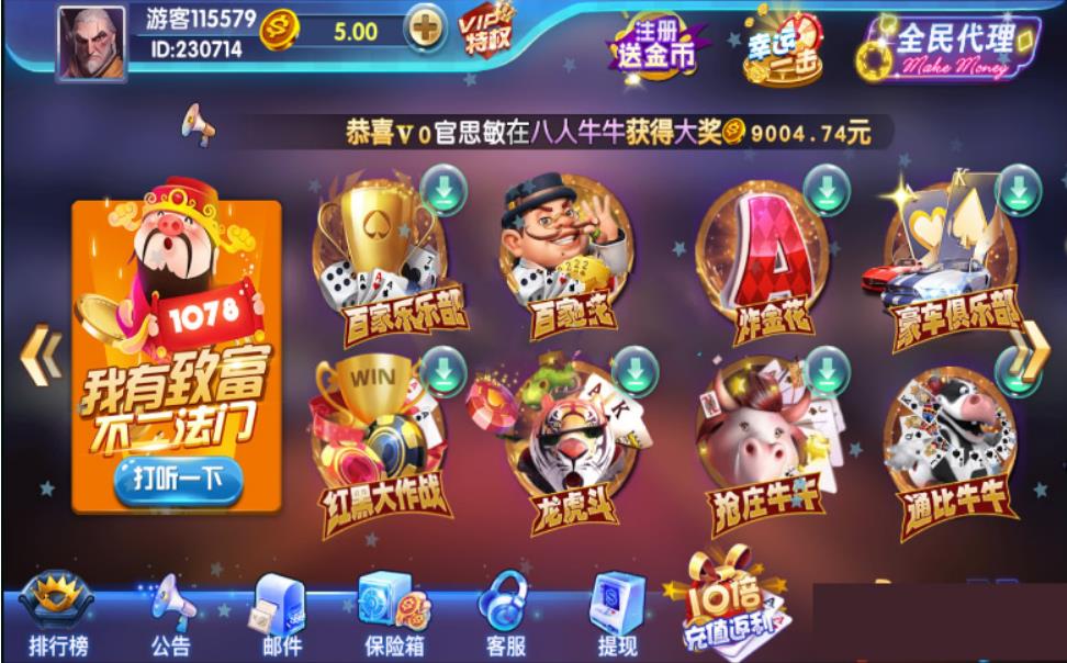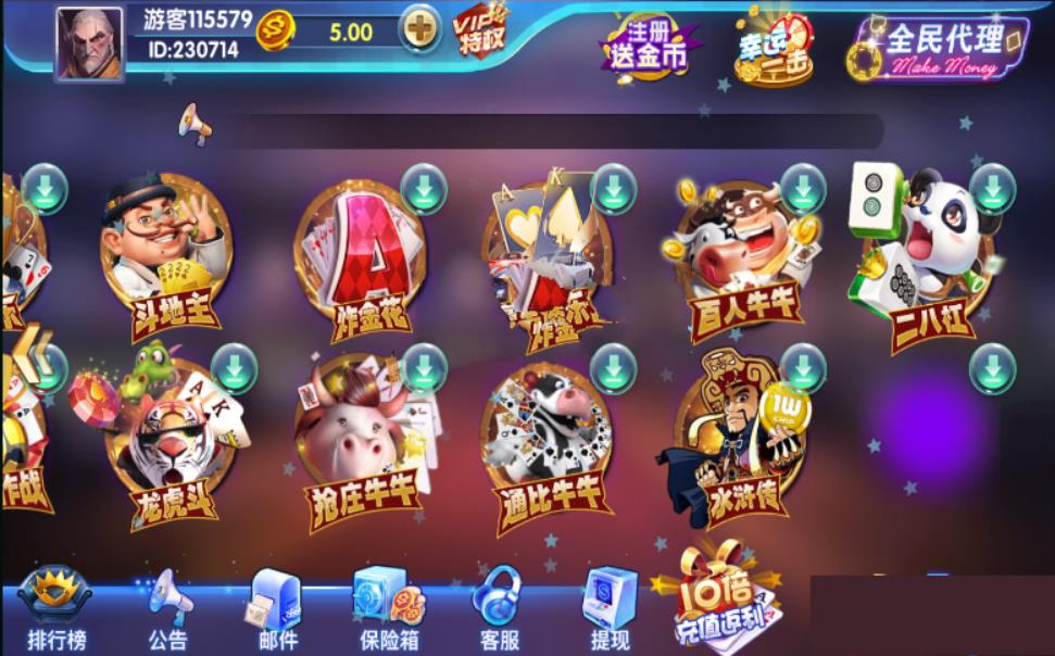 为加速网站,所有图片进行了优化处理,所以并不是高清,实际中游戏与网站本身画面是高清的,部分源码中打包有高清展示图片。棋牌源码网 » P260-万利棋牌二开精华版/二开真钱全民代理+安卓苹果双端APP