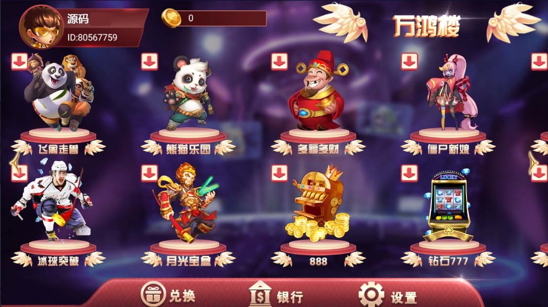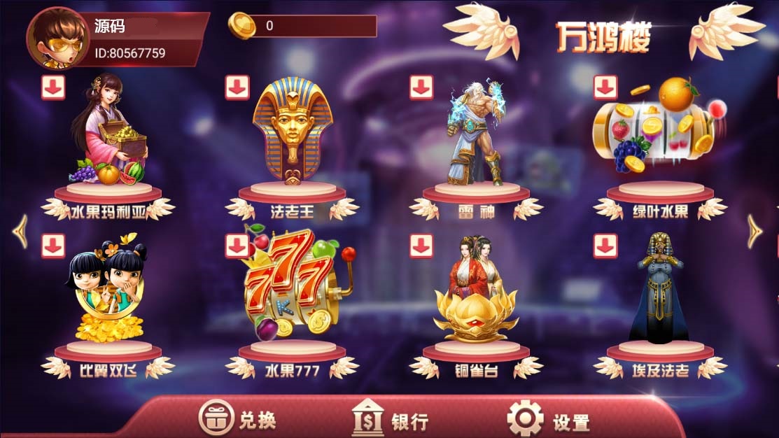 为加速网站,所有图片进行了优化处理,所以并不是高清,实际中游戏与网站本身画面是高清的,部分源码中打包有高清展示图片。棋牌源码网 » P292-UI不一样的万盛系列万鸿楼电玩全套源码组件+双端APP