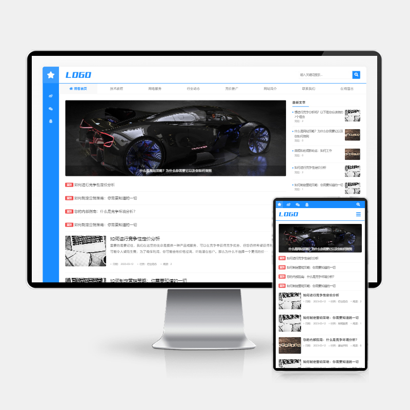 模板名:(H5自适应)蓝色个人技术博客网站pbootcms模板 响应式宽屏大气的新闻博客网站源码下载