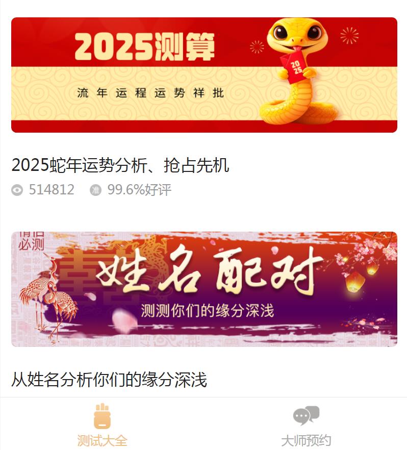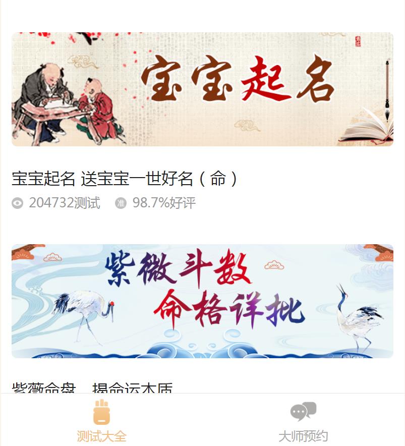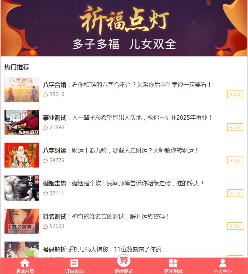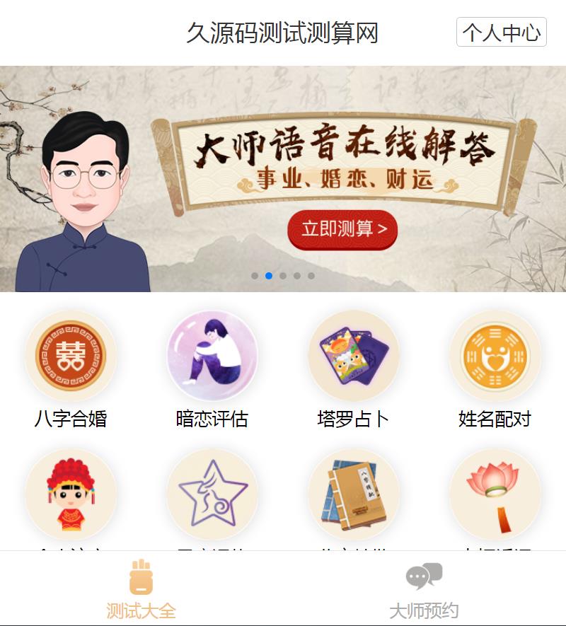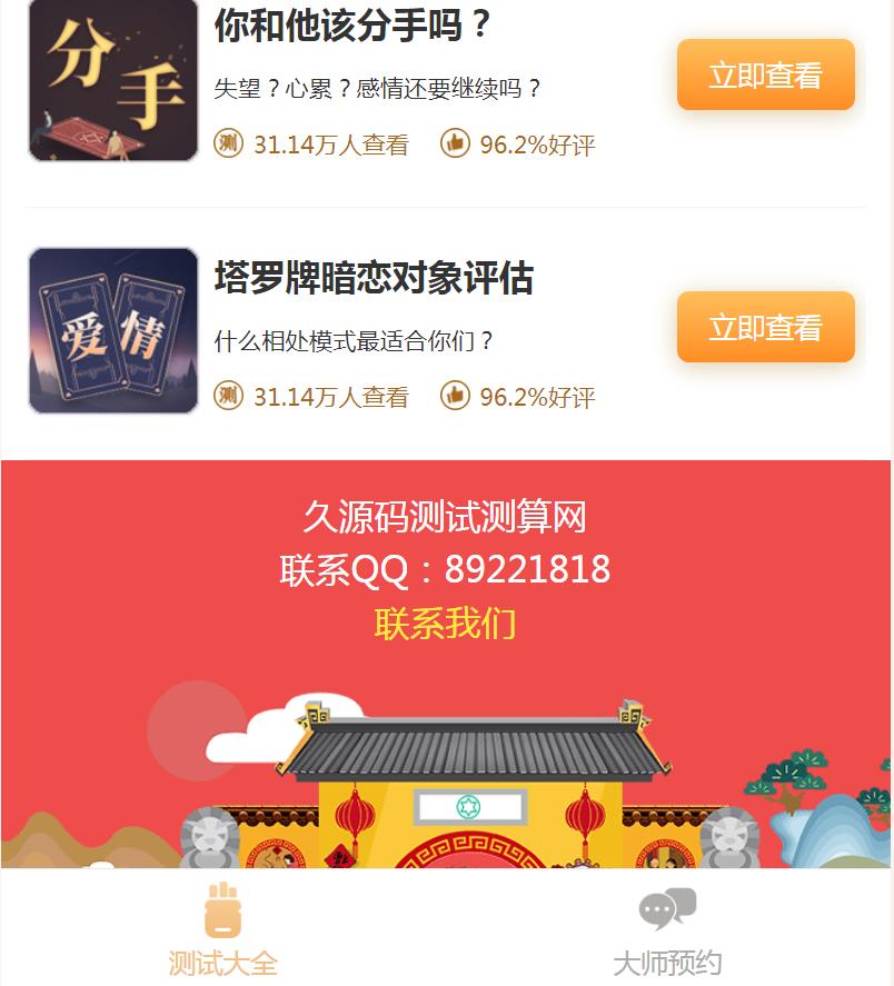 为加速网站,所有图片进行了优化处理,所以并不是高清,实际中游戏与网站本身画面是高清的,部分源码中打包有高清展示图片。棋牌源码网 » Q291-最新发布2025付费测算系统,感情运势、起名算命网站源码