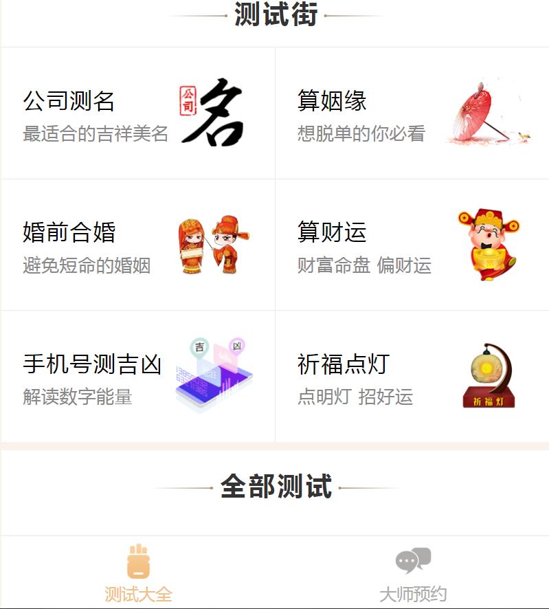 起名、星座、塔罗牌、姓名配对、公司起名、手机号吉凶、祈福点灯等等功能实在太多了,说不清,感兴趣的自己看。