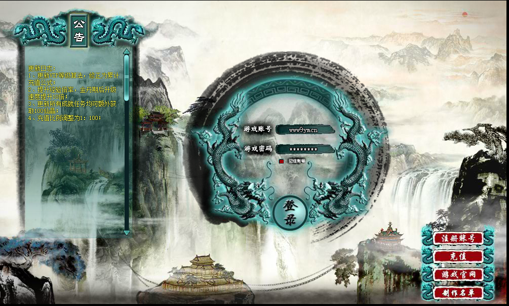 为加速网站,所有图片进行了优化处理,所以并不是高清,实际中游戏与网站本身画面是高清的,部分源码中打包有高清展示图片。棋牌源码网 » Y189【诸仙列传】水墨武侠页游Win服务端+GM后台+详细搭建教程