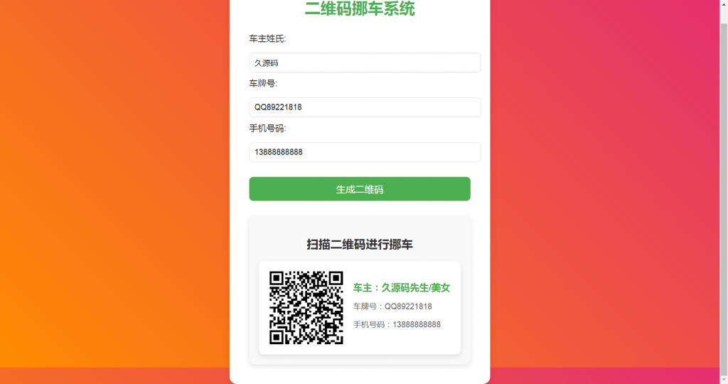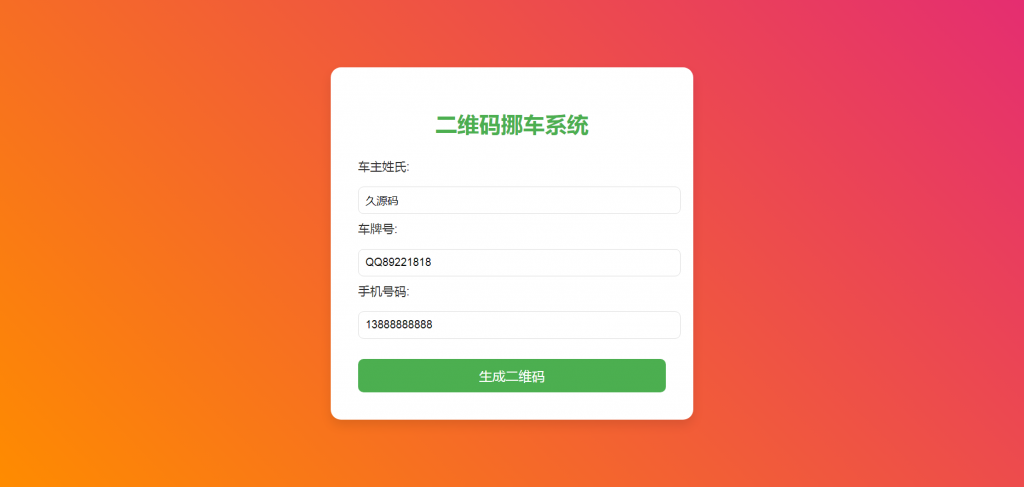 输入车主信息,然后生成挪车二维码,扫码可以一键挪车